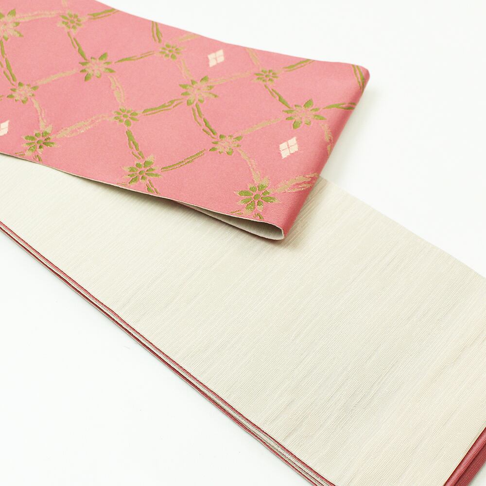 細帯 リバーシブル 4m ポリエステル 半幅帯 浴衣帯 日本製 柔らか ピンク ベージュ 花菱